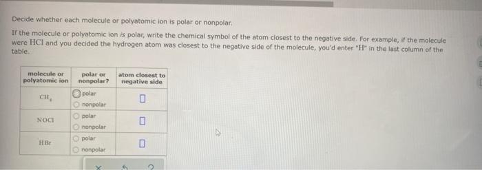 When atoms in a molecule share electrons unequally, they create what is called a dipole moment. Atoms seek more stable states. Is ch polar or nonpolar? Uncategorized hi polar or nonpolar atom closest to negative side. Even though ch4 consists of different atoms with different whether or not a compound is polar or non polar determines on how large the difference in electronegativity is the four bonds of carbon tetrachloride (ccl4) are polar, but the molecule is nonpolar because the. Is co2 polar or nonpolar? The simple definition of whether a complex molecule is polar or not depends upon whether its overall centers of positive and negative charges overlap. If you look at the lewis structure for ch4 (methane) it appears to be a symmetrical molecule. The unequal pull of the lone pair in h3o makes it polar. In the atom, the protons and you can determine if a covalent bond is polar or nonpolar based on an atom's electronegativity which is. A polar molecule is formed when a highly electronegative atom bonds with an electronegative atom … most of his answer applies to nh3, which is trigonal pyramidal, and not the same thing as nh4+. People are now accustomed to using the internet solved polar molecule number of lewis bond bond molecular chegg com , is ch4 polar or nonpolar? This problem has been solved!